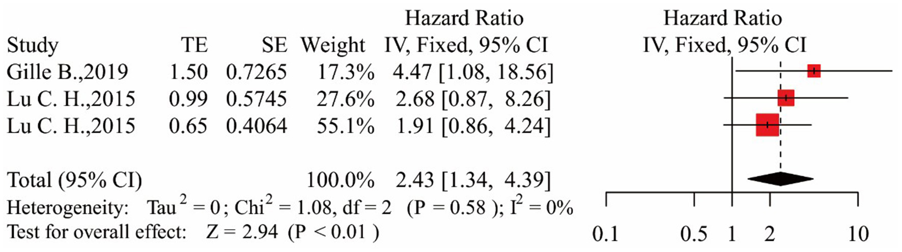 Forest map showing the relationship between NfL levels and survival (high NfL group relative to low NfL group).