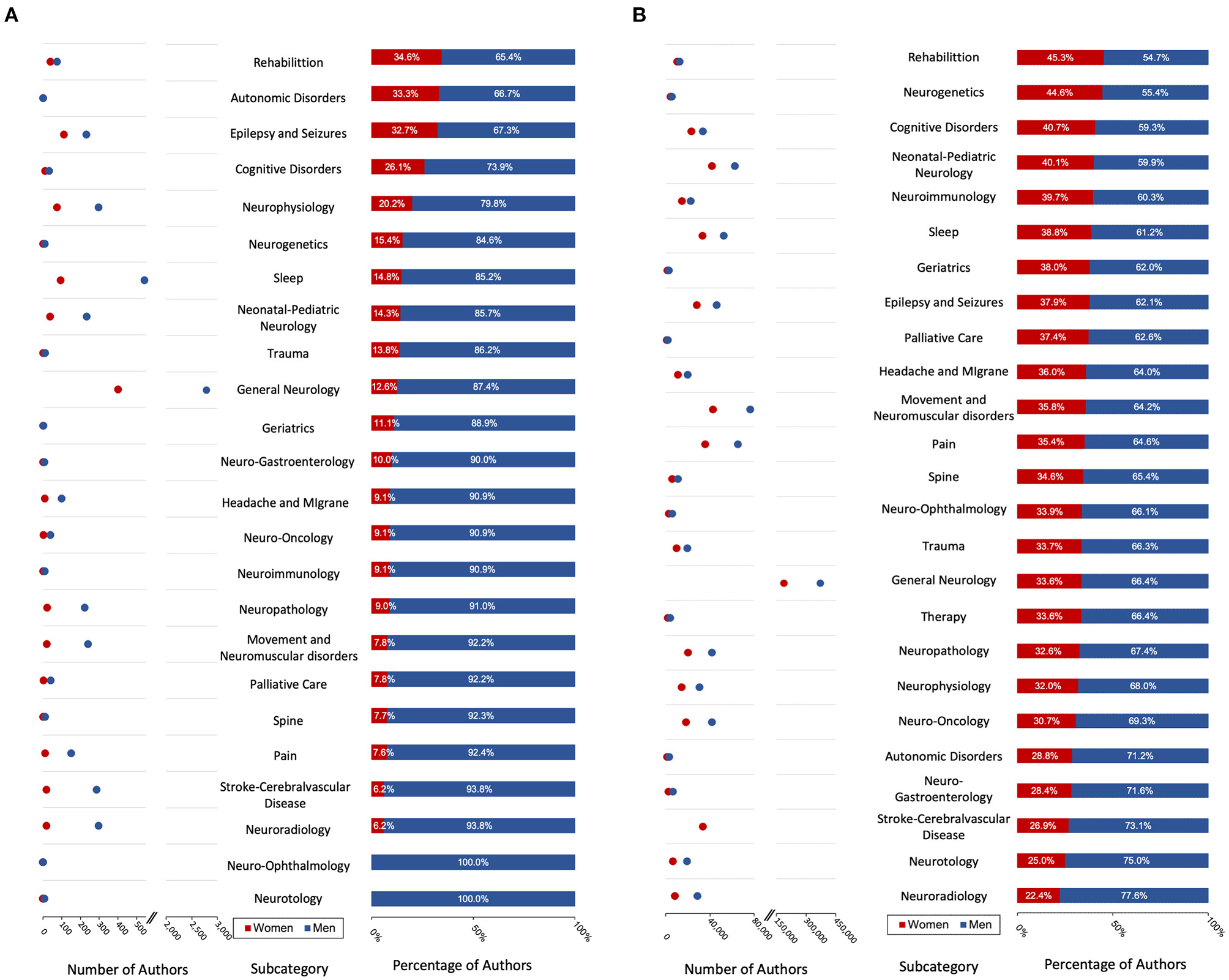 While the numbers of women researchers and clinicians in medicine are increasing, a significant gender gap in academic neurology persists (1). Gender disparity remains in higher faculty ranks (25.0% of full professors in 2018 were women) even though the proportions of women residents in neurology and neurological subspecialties (45.0% in 2018) are approaching the ratio of women medical school graduates (47.9% in 2018–2019) (2). These unequal proportions may result from gender biases that are barriers to women neurologists obtaining funding, authorship and recognition, as well as attaining leadership positions (1). For instance, neurology has one of the largest gender pay gap among all the medical fields (3).