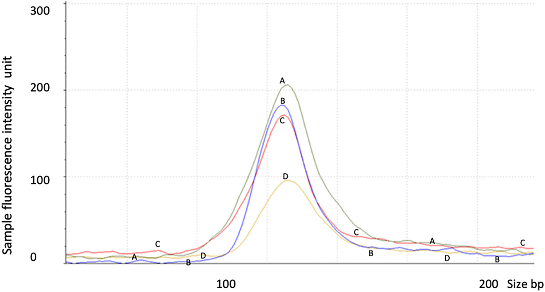 PCR amplification was performed with the Applied Biosystems GeneAmpR PCR System 9700 (Applied Biosystems/ThermoFisher Scientific, Waltham, MA, USA) for 38 Cycles at 95°C denaturation for 10 s, annealing at 59°C for 15 s and extension at 72°C for 15 s. The PCR amplification was completed during the linear phase at cycle 38. The PCR products were separated on the TapeStation 2200 instrument with a High Sensitivity D1000 ScreenTape (Agilent Technologies, Waldbronn, Germany) as per the manufacturer's specifications for analysis of the RT-Q-PCR products. Data were obtained and images were captured using TapeStation Analysis Software (A.02.01) (Agilent Technologies, Waldbronn, Germany). The tests were repeated more than three times.