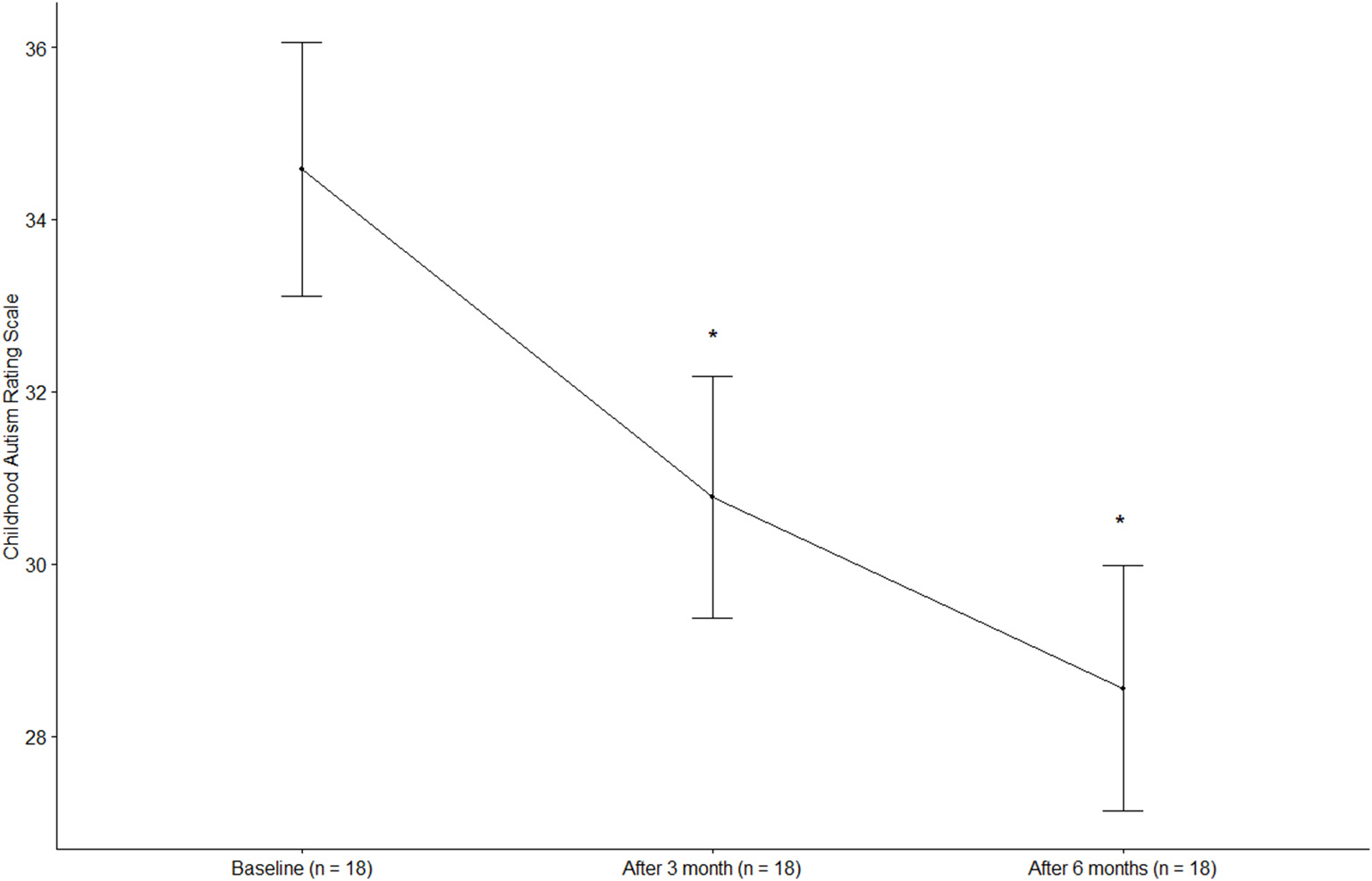 | CARS | 36.0 ± 5.9 | 33.2 ± 6.7 | 0.92 (0.76–1.08) | 0.65 (0.30–0.98) | |