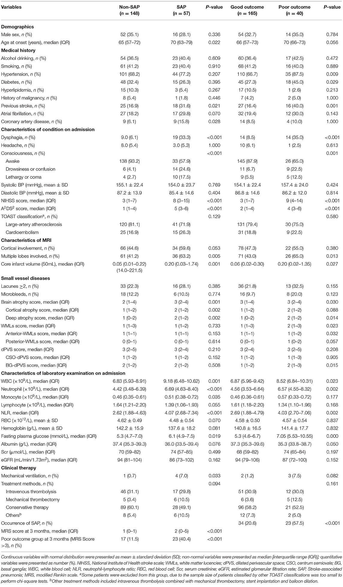 Table 1. Univariable analysis of baseline characteristics associated with occurrence of SAP and development of poor outcome.