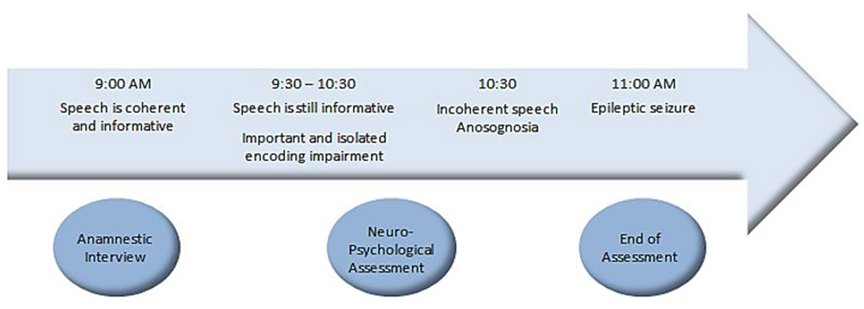 We report here the exceptional case of a well-characterized TEA patient who presented an amnesic attack in the immediate aftermath of an NPA. We can thus detail the appearance and progression of subtle cognitive impairments 1 h and a half before the clinical seizure.