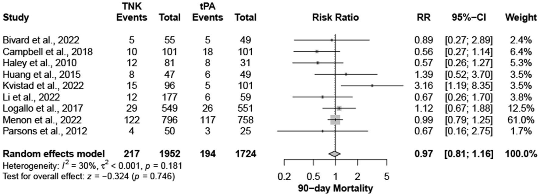 Rates of mortality at 90 days. TNK, tenecteplase; tPA, alteplase.