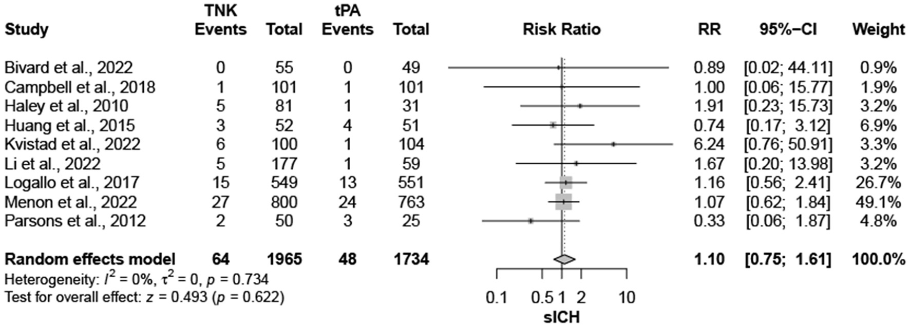 Rates of sICH. TNK, tenecteplase; tPA, alteplase.
