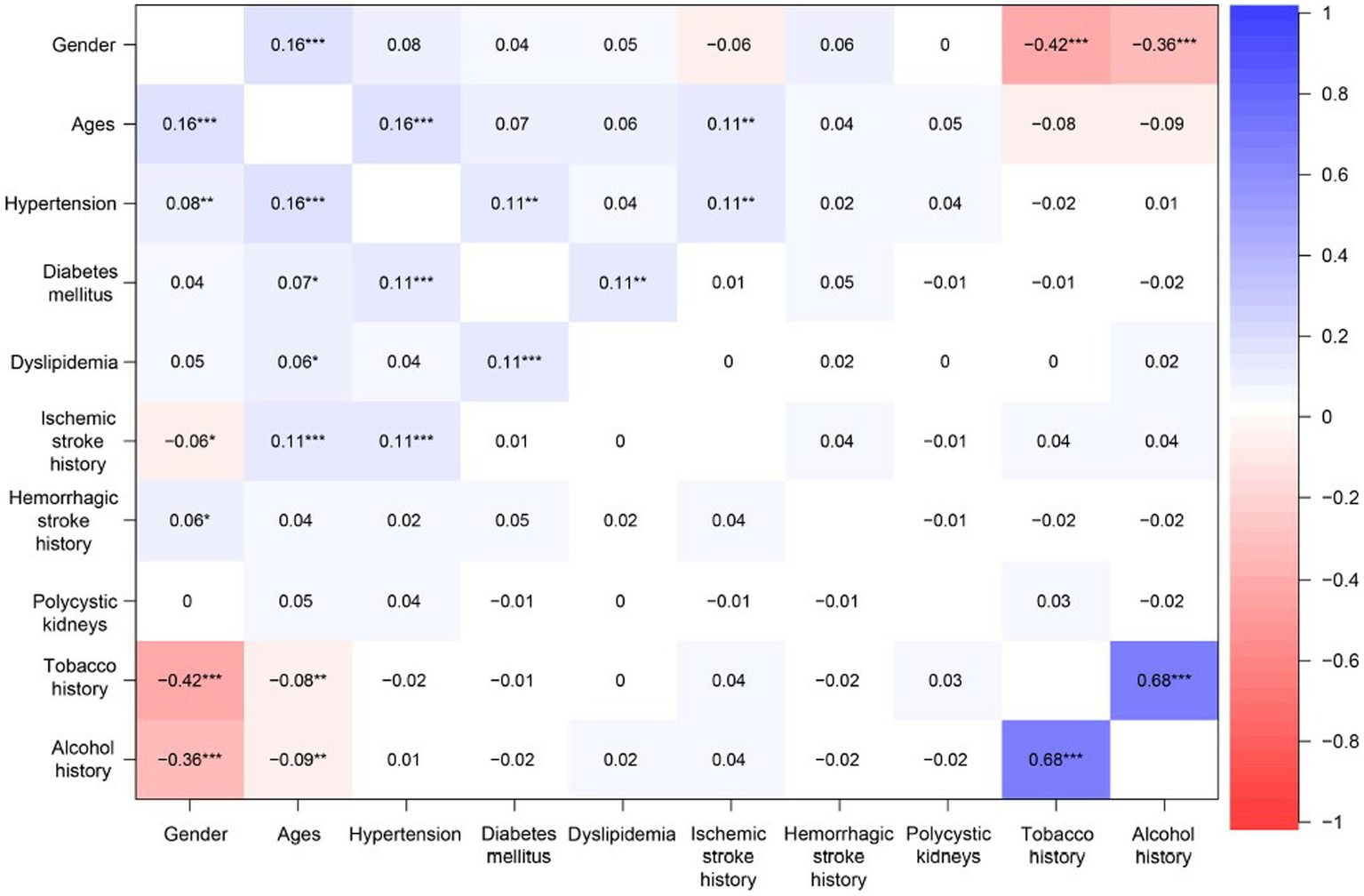 | Hemorrhagic stroke history (yes) | 40 (3.0%) | 22 (2.0%) | 18 (9.0%) | <0.001 |