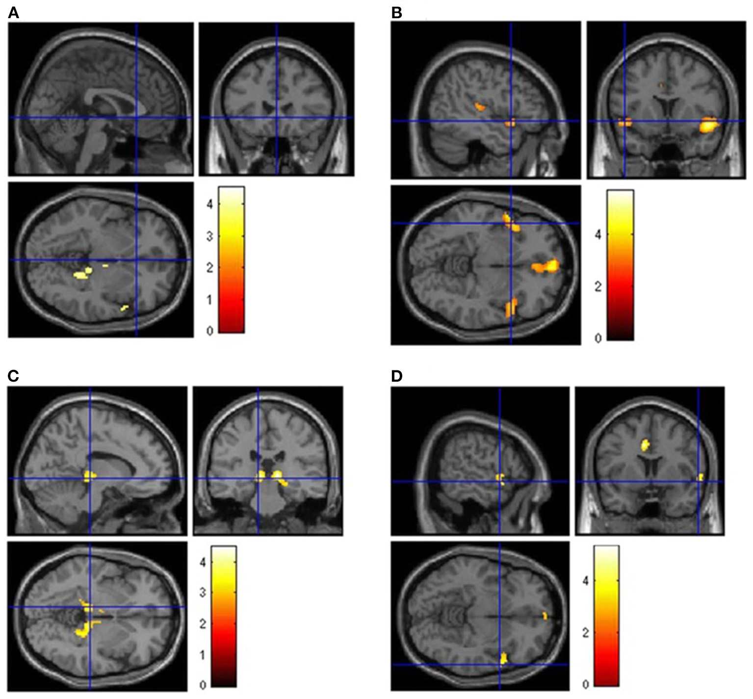 Brain [18F]FDG PET analysis. Regions of hypometabolism compared to controls in the 13 long COVID patients (A) and subgroups of patients showing persistence of anosmia (B), fatigue (C), or mild-to-moderate vessel [18F]FDG uptake (D). Regions of significant difference are color-graded in terms of Z-values. Adapted from Sollini et al. (46) (License Number 5472490224310).