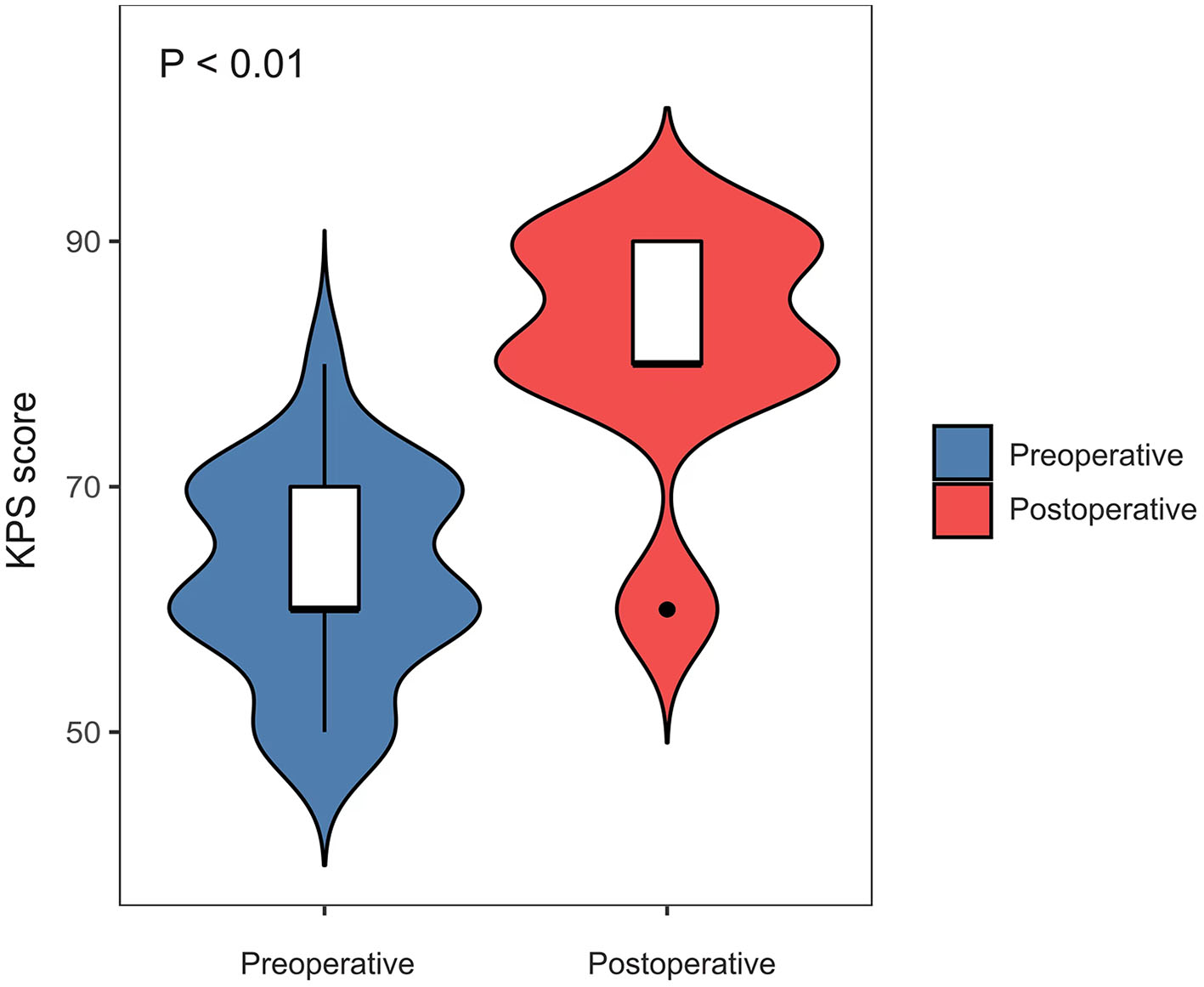 Comparison of preoperative vs. postoperative changes for a KPS score in the success group.