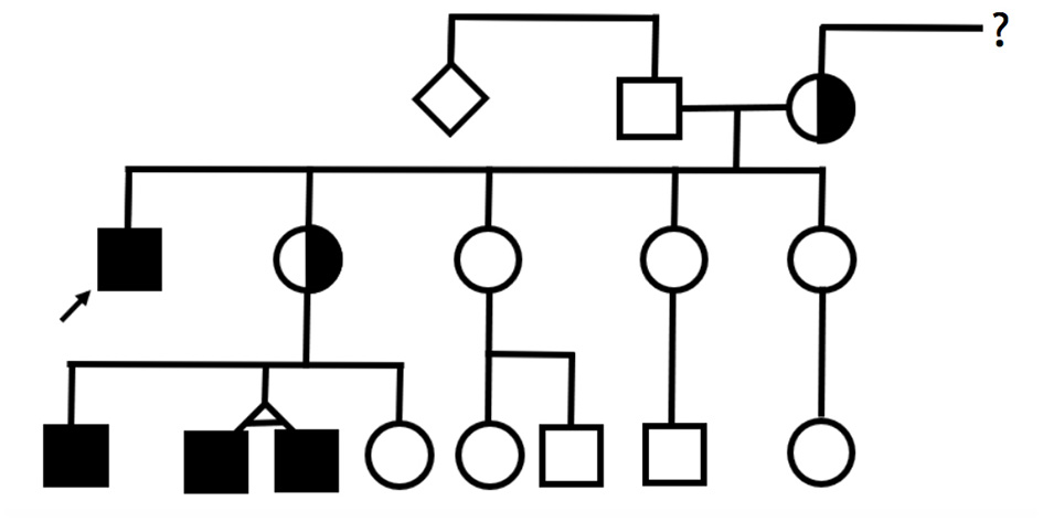 Pedigree. Filled squares represent individuals with a molecularly confirmed diagnosis of MTS.
