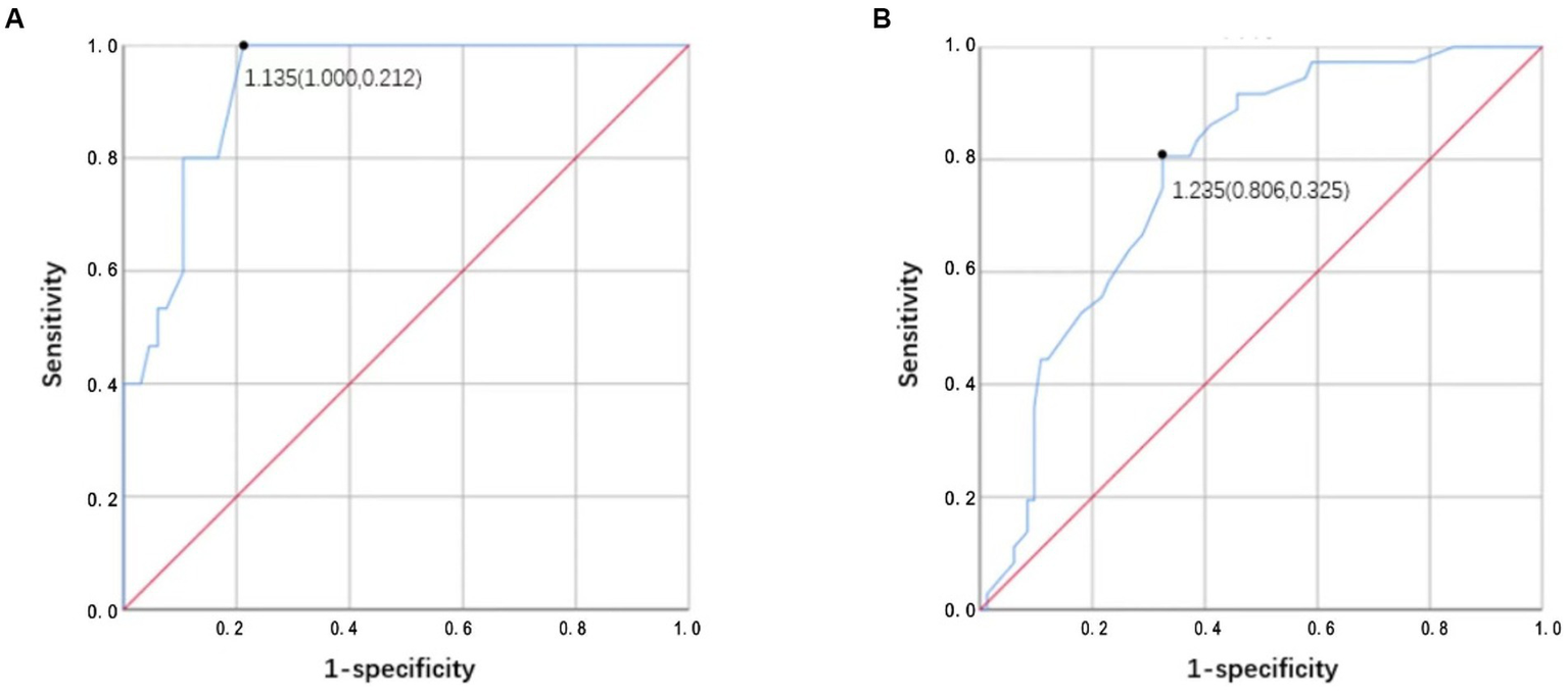 A total of 204 patients were included in this study, with 81 and 123 in the mild and severe stroke groups, respectively. The demographic and clinical data of the two groups are presented in Table 1. Notably, the number of patients who did not show improvement was significantly lower in the mild stroke group than in the severe stroke group. Moreover, the LVEF measured by echocardiography was significantly higher in the mild stroke group. The time from stroke onset to CT, history of diabetes mellitus, acute treatment, and laboratory examinations were also different between the two groups.