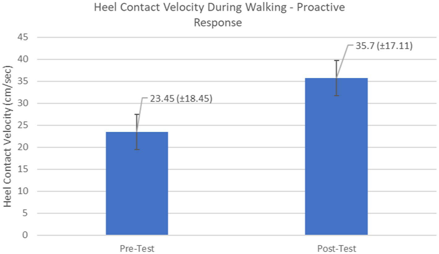 The generalizability of two types of training programs (PST during stance and dynamic gait) and Pre-test and Post-test differences on dependent measures in Table 2 were ascertained using a linear mixed effect model on all gait and posture parameters using the above repeated measures ANOVA. The statical analyses were processed using the JMP Pro 16, 2021, SAS Institute.