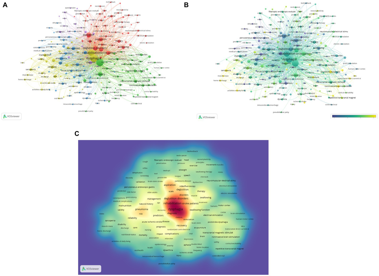 He Y, Tan X, Kang H, Wang H, Xie Y, Zheng D and Li C (2023) Research trends and hotspots of post-stroke dysphagia rehabilitation: a bibliometric study and visualization analysis. Front. Neurol. 14:1279452. doi: 10.3389/fneur.2023.1279452