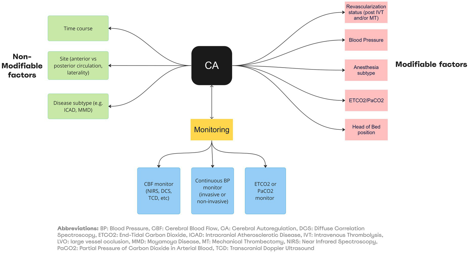Large vessel occlusion (LVO) accounts for approximately 30 to 40% of all acute ischemic stroke (AIS) cases. Currently, only 10–20% of patients with LVO undergo endovascular treatment. Out of those patients that receive endovascular treatment, effective recanalization is achieved in about 70% of the cases, yet only approximately 46% will have an independent outcome at 90 days (4). The importance of optimizing CA in these patients during different phases of AIS including during intensive care has not yet been well established.