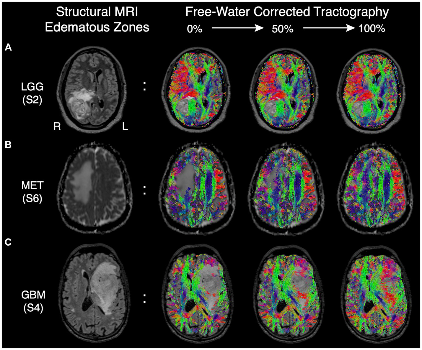 tractography, peritumoral zone, edema correction, fiber tracking, diffusion tensor imaging, free-water correction