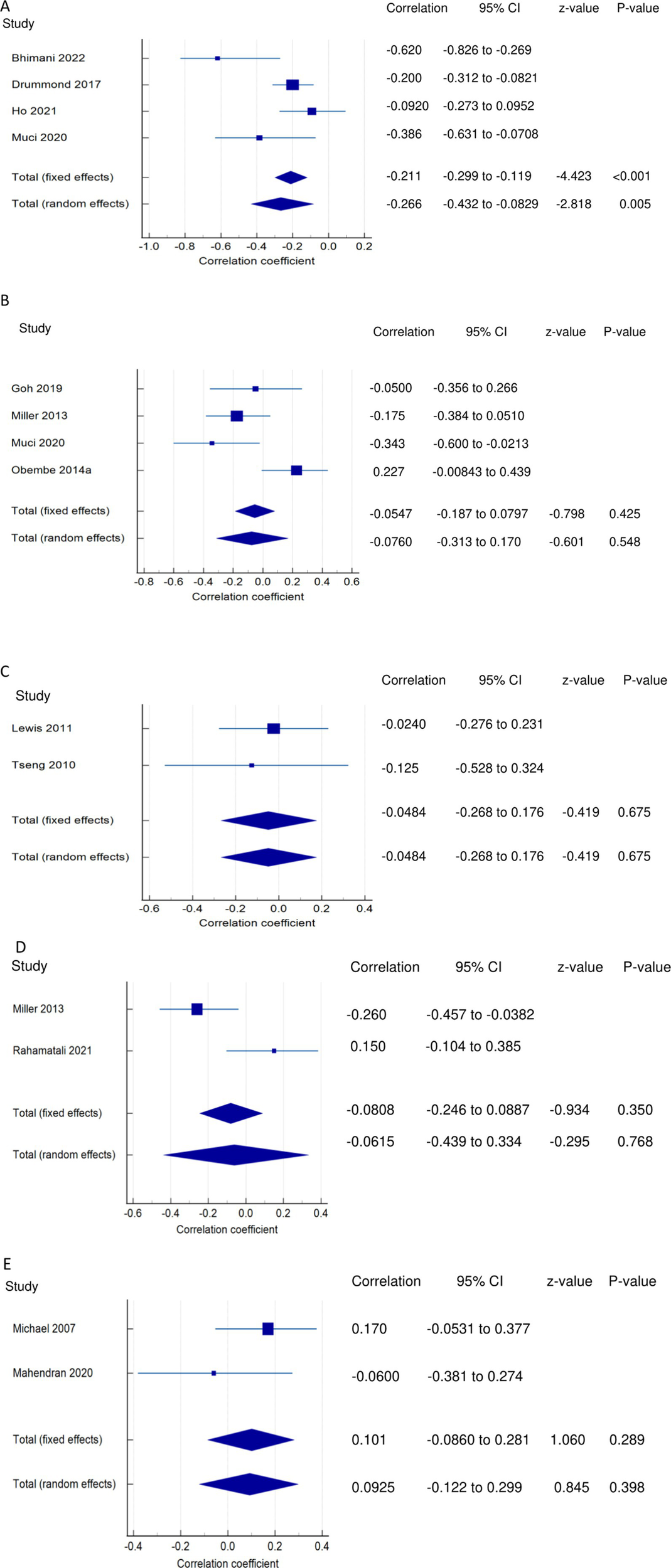Chronic PSF was found to have significant negative correlations with mobility (meta r = −0.106, p < 0.001), balance performance (meta r = −0.172; 95%; p = 0.004), and quality of life (meta r = −0.647; p < 0.001). It also showed significant positive correlations with stroke impairment (meta r = 0.144, p < 0.001) and disability (meta r = 0.480, p < 0.001). Additionally, exertion/acute PSF had significantly negative correlations with walking economy (meta r = −0.627, p < 0.001) and walking endurance (meta r = −0.421, p = 0.022). The certainty of evidence was deemed moderate for these relationships.