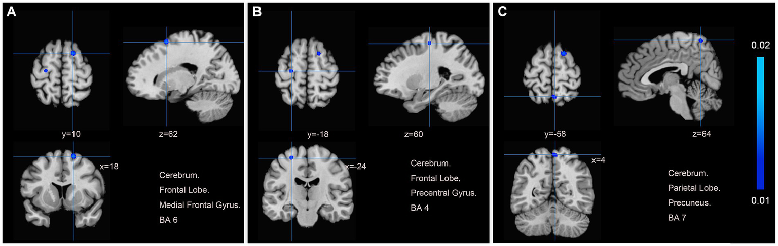 A resting-state functional magnetic resonance imaging (fMRI) technique measures spontaneous neuronal activity by capturing signals related to blood oxygen levels (BOLD). Amplitude of low frequency fluctuations (ALFF), which reflects the intensity of regional fluctuations in the BOLD signal, and regional homogeneity (ReHo), which measures BOLD signal coherence across neighboring voxels and a single voxel. Hence, ALFF and ReHo together are adequate to show spontaneous brain activity (7–9). In order to better understand the neurological effects of acupuncture therapy, an increasing number of acupuncture studies are applying rs-fMRI to clinical trials. It has been found that the mechanism by which acupuncture can restore motor function in patients with post-stroke functional dysfunction is closely related to the regulation of brain function (5, 10). However, due to the small sample size or the differences in experimental design between studies, the results of various studies are different, which makes the neural mechanism of acupuncture therapy to improve motor function in patients controversial and the results difficult to generalize (11, 12). Therefore, there is a need to quantitatively integrate these discrepant results through meta-analysis.