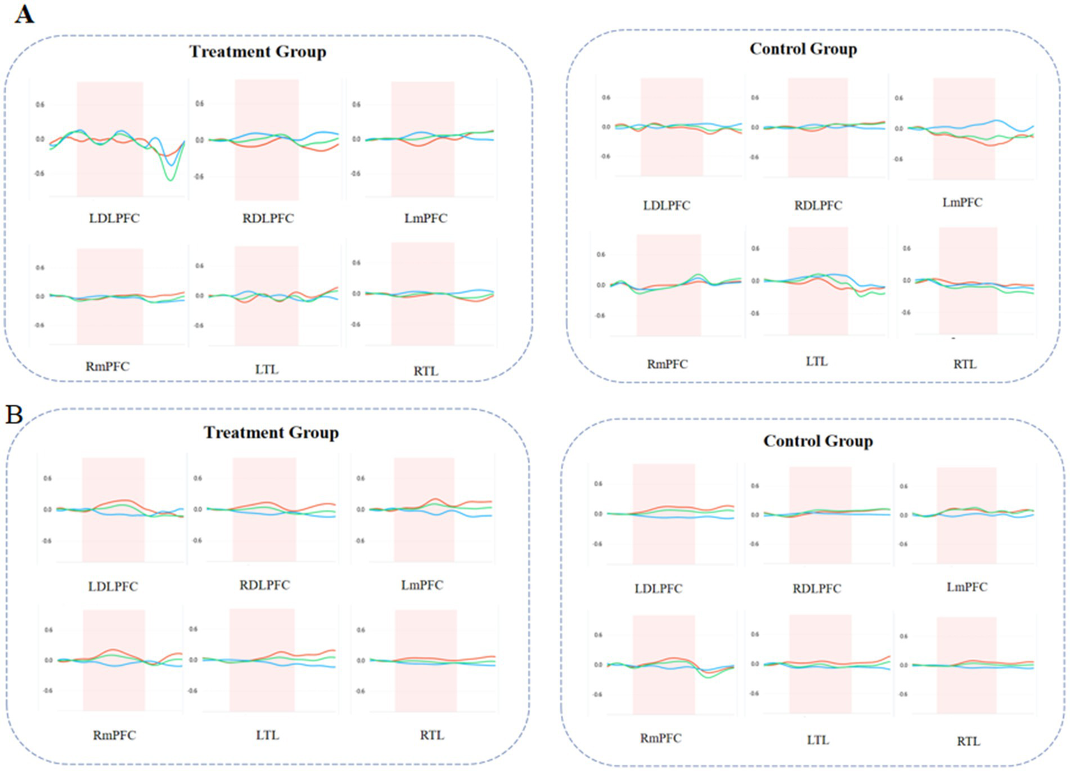 In conclusion, the study comprised 17 participants in the treatment group and 18 in the control group. Initially, the SNAP-scale scores were comparable between the groups, with no significant differences observed (p > 0.05). Post-treatment, a notable reduction in SNAP-scale scores was evident (p < 0.05), with the treatment group exhibiting a more pronounced decrease (p < 0.05). Following the intervention, both groups demonstrated enhanced Resting-state functional connectivity (RSFC) in the prefrontal cortex, as indicated by a significant increase compared to pre-treatment levels (p < 0.05). Specifically, the treatment group showed superior RSFC in the left dorsolateral prefrontal cortex, right dorsolateral prefrontal cortex, left medial prefrontal cortex, and right medial prefrontal cortex compared to the control group (p < 0.05). However, no significant differences were noted in RSFC of the left and right temporal lobes between the two groups (p > 0.05). In the Go/no-go task, the treatment group recorded higher mean HbO2 concentrations in the aforementioned prefrontal cortical regions compared to the control group (p < 0.05). Conversely, no statistically significant disparities were observed in the left and right temporal lobes of both groups.