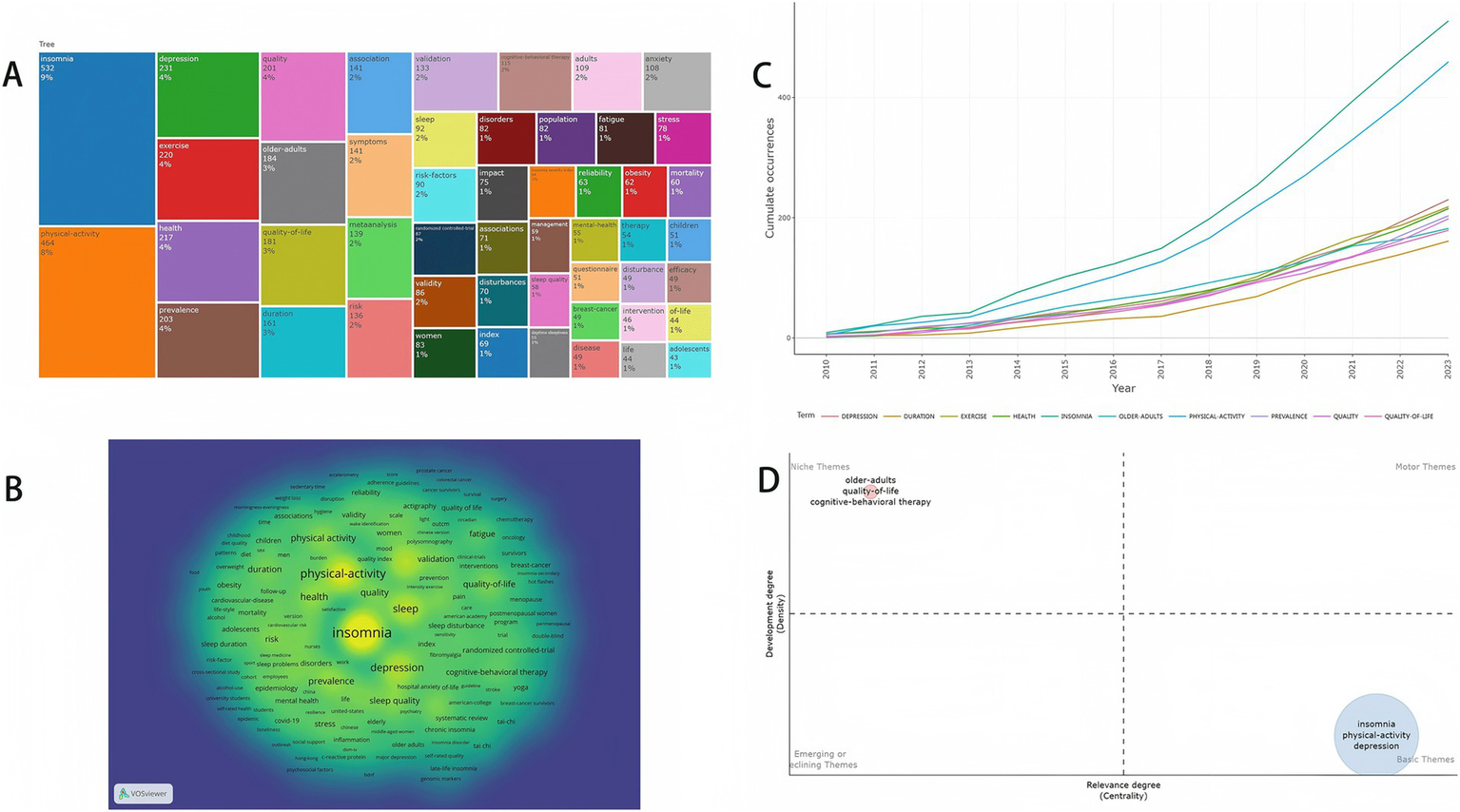 This study analyzes trends and hotspots in the research on exercise for insomnia using bibliometric methods and visually presents key information in the field.