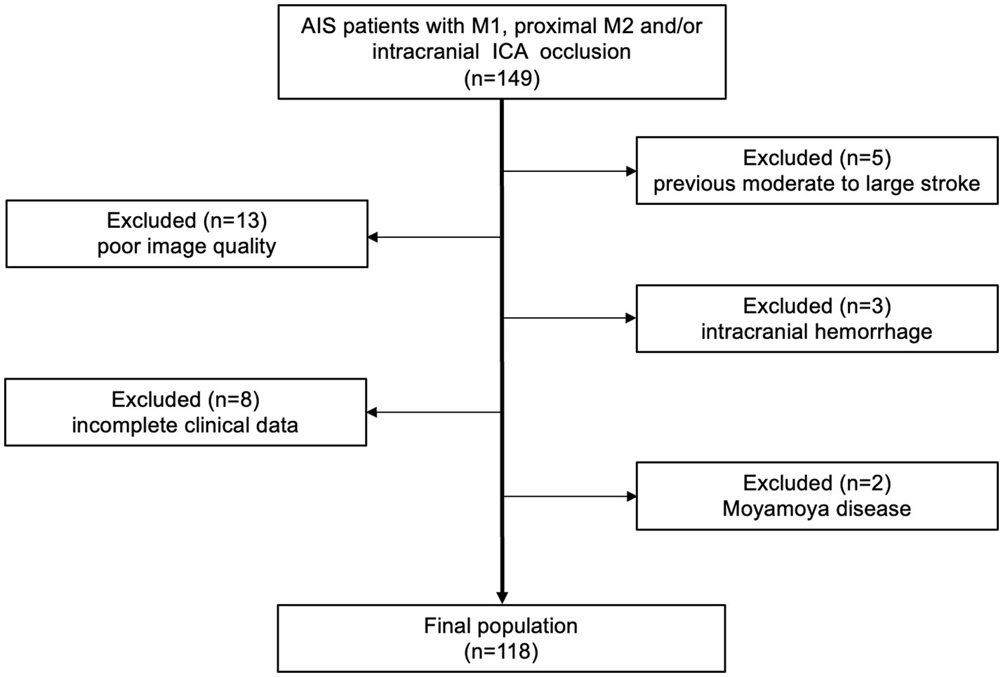 Figure 2. Flow chart of enrolled patients. AIS, acute ischemic stroke; ICA, internal carotid artery.
