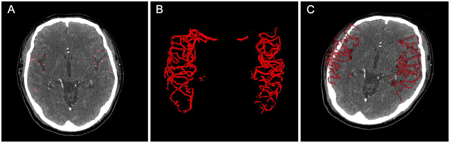 In the realm of acute ischemic stroke (AIS) management, collateral circulation stands as a pivotal determinant of clinical outcomes, serving as a crucial benchmark for assessing the feasibility of mechanical thrombectomy beyond time window (1, 2). Among the myriad of imaging modalities, computed tomography angiography (CTA) has firmly established itself as the most common method, owing to its convenience, and unparalleled temporal and spatial resolution which enables meticulous delineation of collateral vessel architecture. Despite the proliferation of CTA-based collateral scoring systems, a universally accepted and superior methodology remains elusive (3), with conventional visual scoring methods beset by notable intra-and inter-observer variability, spanning a range of 0.49 to 0.97 (4, 5). This variability, exacerbated by the heterogeneity in physician expertise and research foci within the context of clinical emergencies (6, 7), underscores the urgent need for an objective, quantifiable assessment approach.