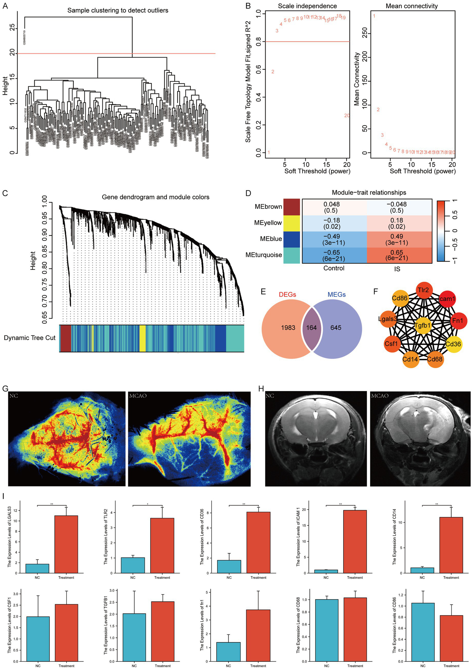 To investigate the exosome-related genes among the DEGs in mice, we obtained exosome-related genes from Exocarta7, which includes a total of 1,715 mouse exosome-related genes. The Overlap of exosome-related genes and DEGs is shown in the Venn diagram (Figure 2I), and, as a result, 199 genes in the mouse IS dataset were obtained for subsequent analyses.