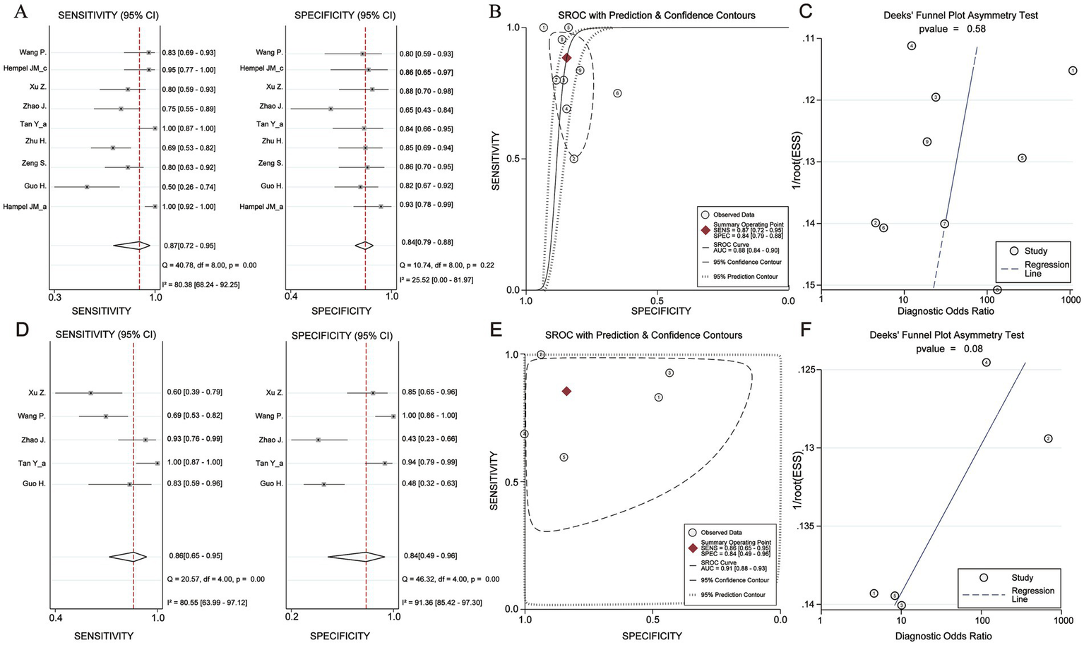 | Xu C. | Up to December 15, 2020 | Histopathology or Clinical diagnosis | 13 | 706 (277/429) | Sensitivity: 88% (95% CI, 83–91%) Specificity: 91% (95% CI, 86–95%) ROC curve: 0.93 (95% CI, 0.90–0.95) |
