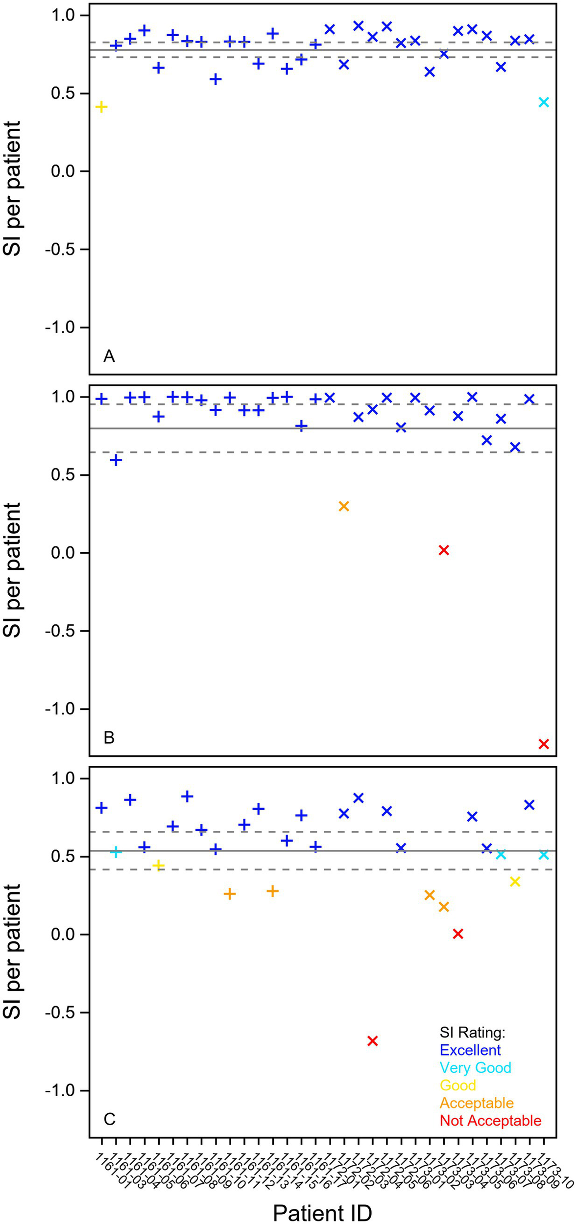 | Vertical | 89.5 | 84.2 | 83.5 | 81.1 | 82.9 | 89.7 | 0.18 | 0.08(−0.08–0.24) | Not acceptable | |
