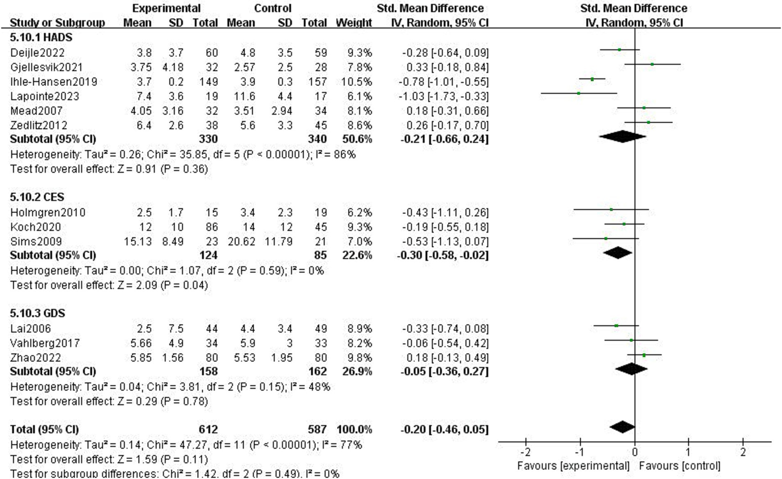 RevMan 5.4 was used for the evaluation of heterogeneity and merging data in this meta-analysis. Mean difference (MD) and standard mean difference (SMD) were used to represent continuous variables, whereas SMD was used to express continuous variables with distinct differences and units of measurement. I2āÆā¤ 50% was considered low heterogeneity, and the fixed effect model was used for the meta-analysis. Instead, a random-effects model was used for meta-analysis. In addition, subgroup analyses were performed with high statistical heterogeneity.