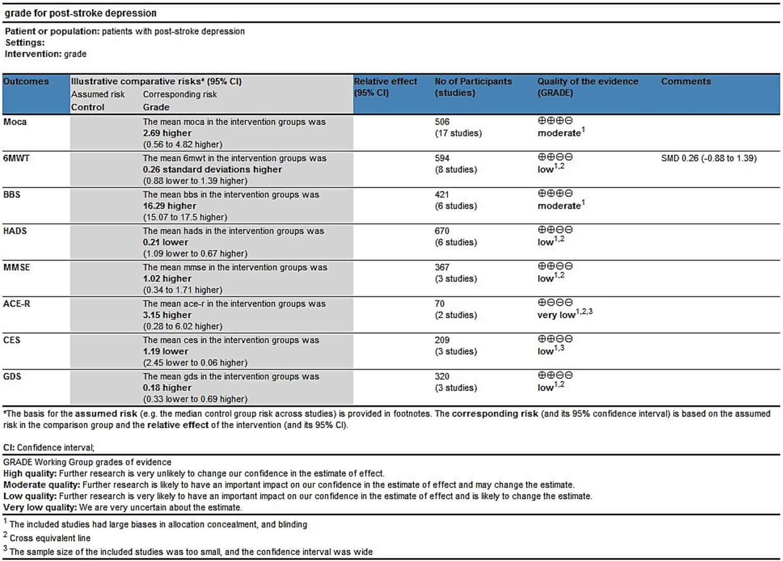 The aim of this meta-analytical review was to explore the effects of exercise intervention programs on depressive symptoms, cognitive function, physical function, and quality of life in stroke patients, as well as to identify appropriate exercise programs.
