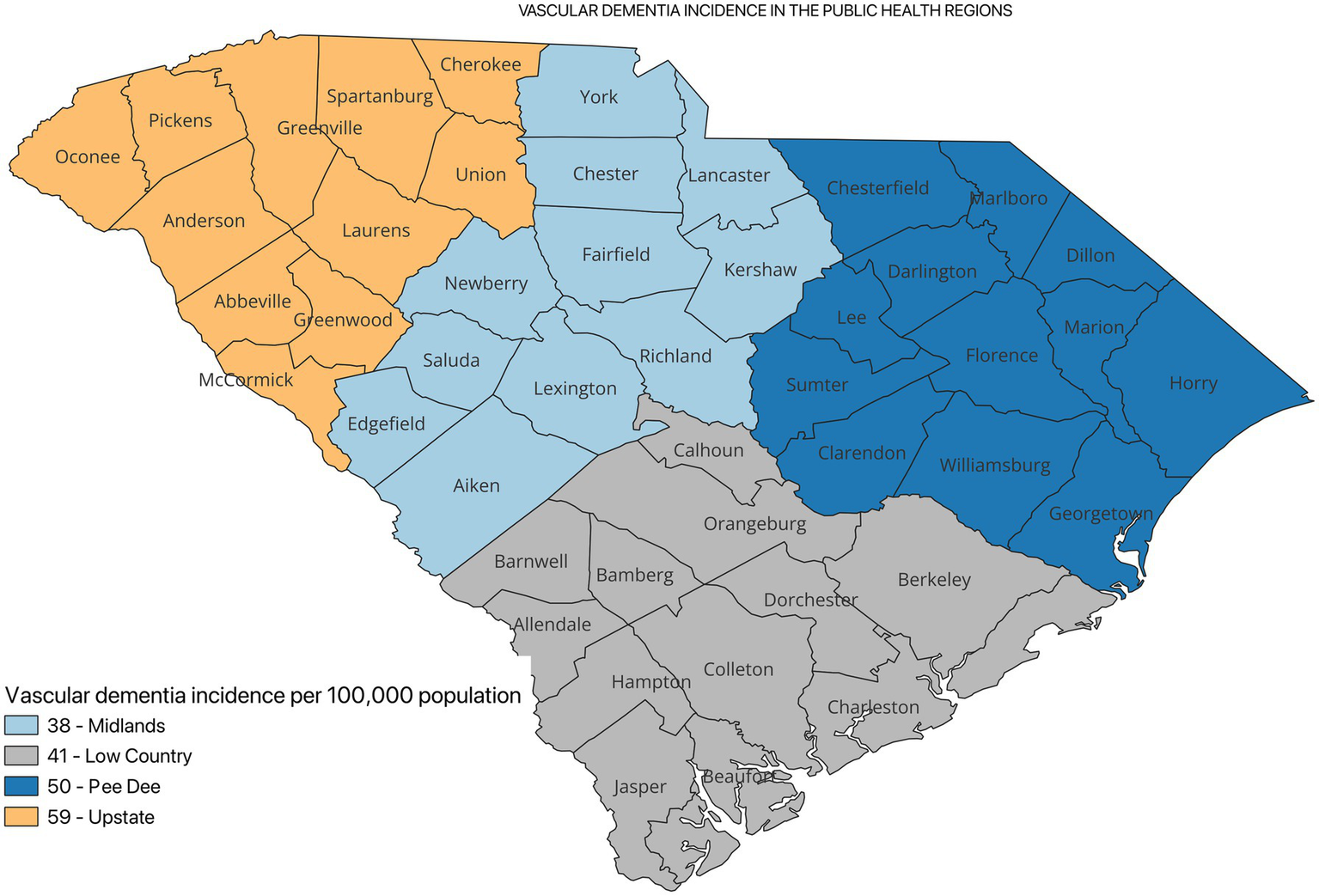 Alzheimer’s Disease incidence in the public health regions in South Carolina.