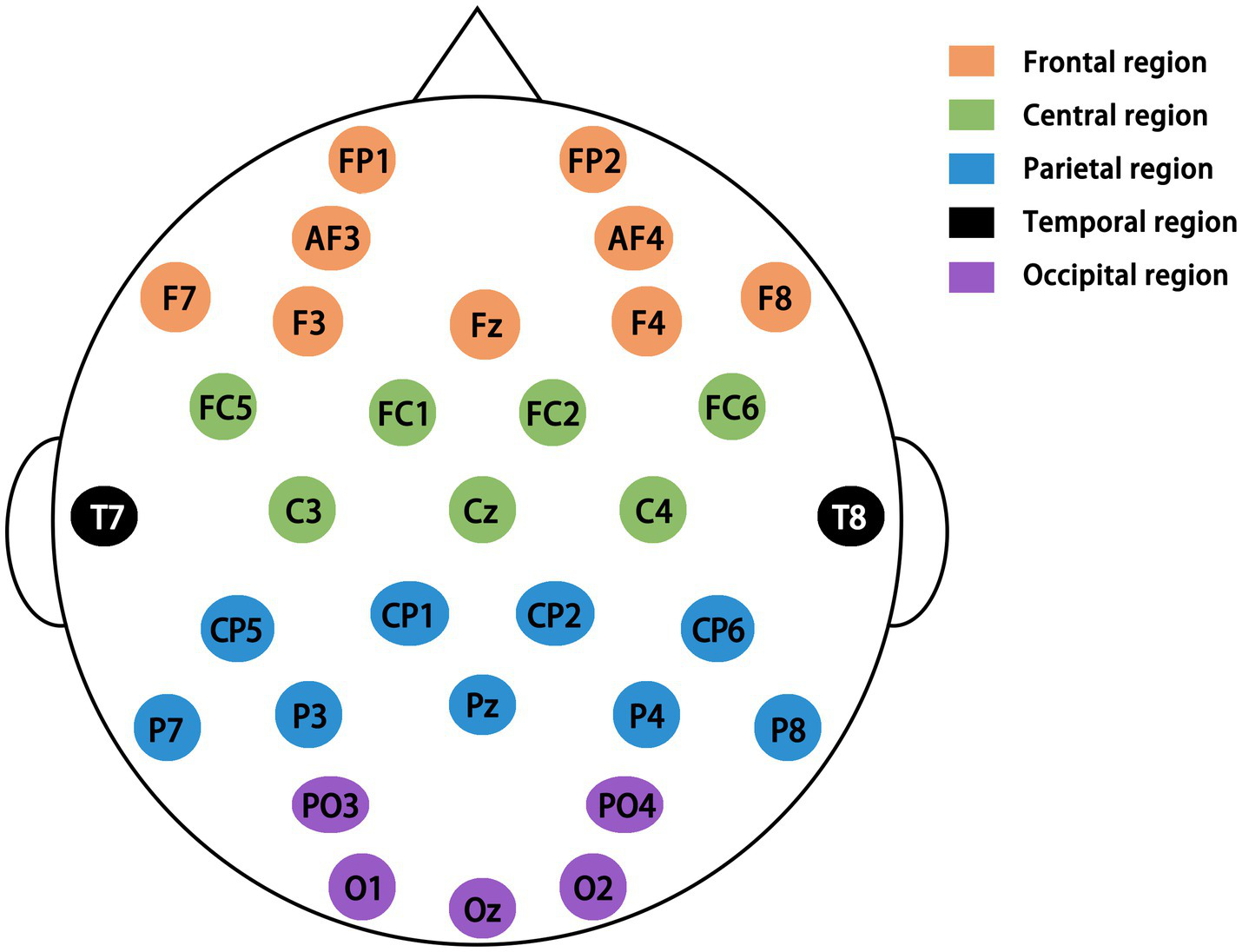 Diagram showing electrode positions for the 32-channel International 10–20 system (45).
