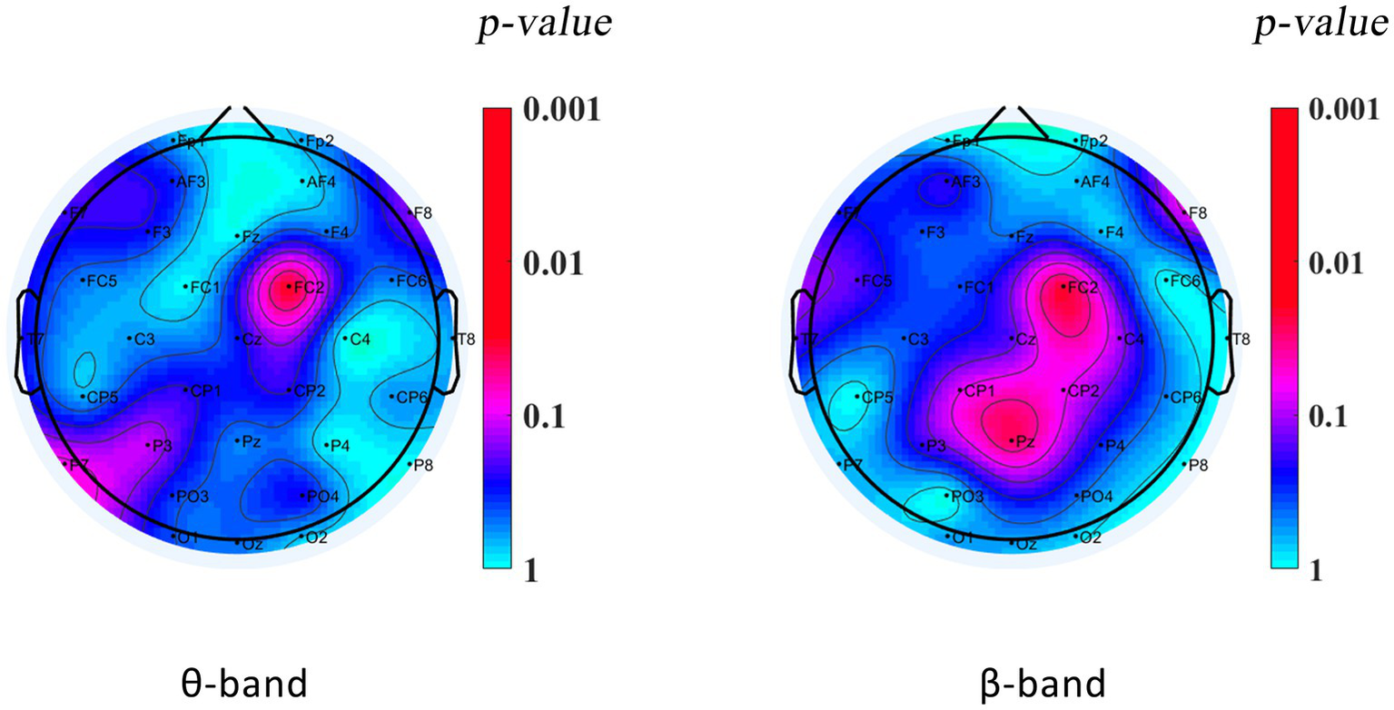 | β | Left frontal region | Right parietal region | FP1-CP6 | 0.036 |