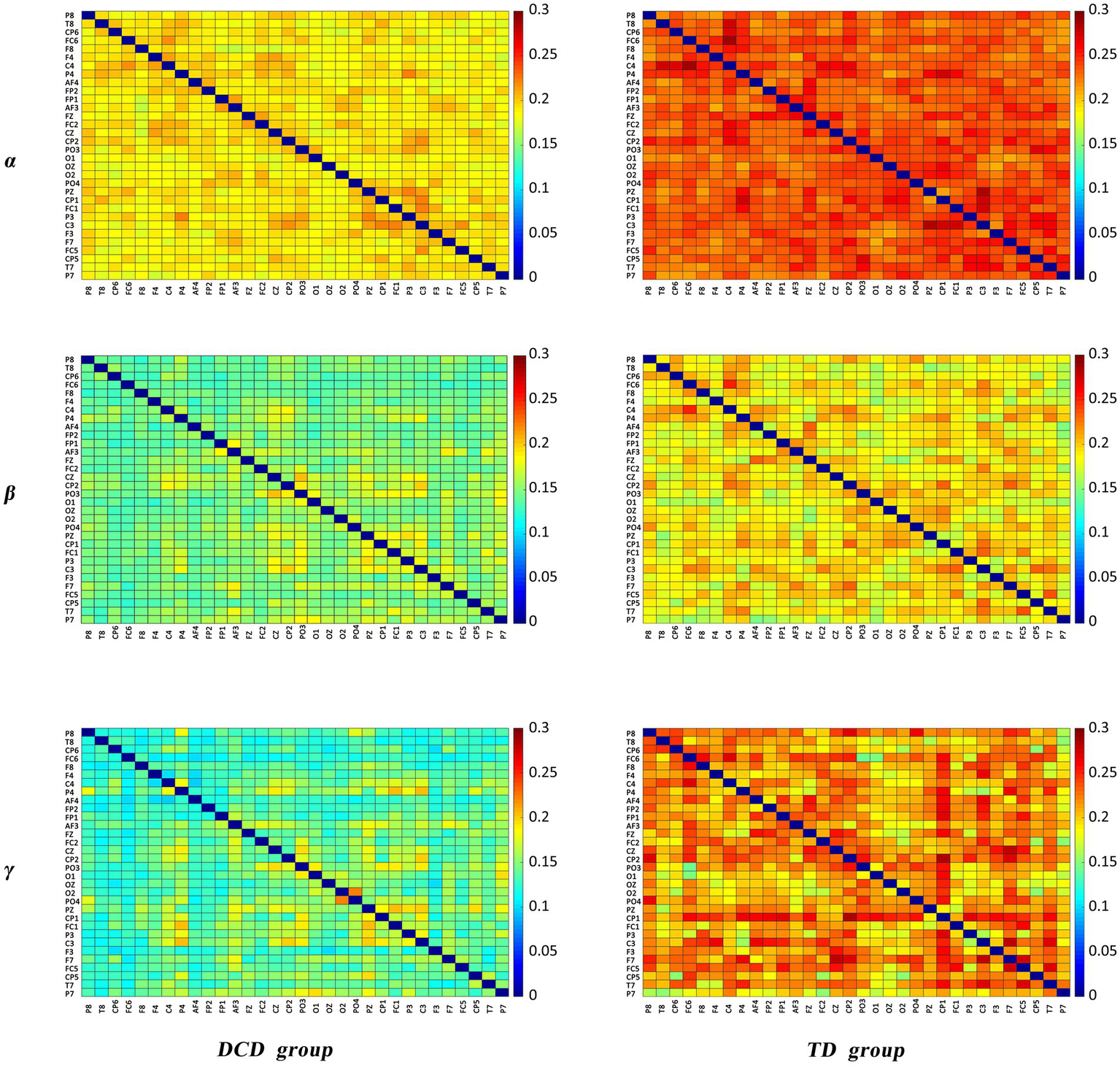 In comparison, no statistically significant difference in the VMI-state EEG SampEn was found between the DCD boys and the TD boys (p > 0.05).