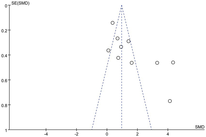 The meta-analysis utilized STATA version 17.0 and Review Manager software version 5.3. For continuous data, the mean ± standard deviation is shown; if the studies included utilized median and quartile values, we calculated the mean and standard deviation using the methodology of Wan et al. (23). Statistical significance was established with p-values < 0.05, accompanied with 95% confidence intervals. The WMD served as the metameter, while the standard deviation (SD) was utilized to assess the precision and significance of that estimate. The heterogeneity among studies was assessed utilizing Cochrane-based Q and I2 tests. Data with p < 0.05 or I2 > 50% were deemed to indicate statistically significant heterogeneity and were examined through the use of a random-effects model. When I2 < 50%, they used a fixed-effects model. Publication bias was evaluated using a funnel plot.