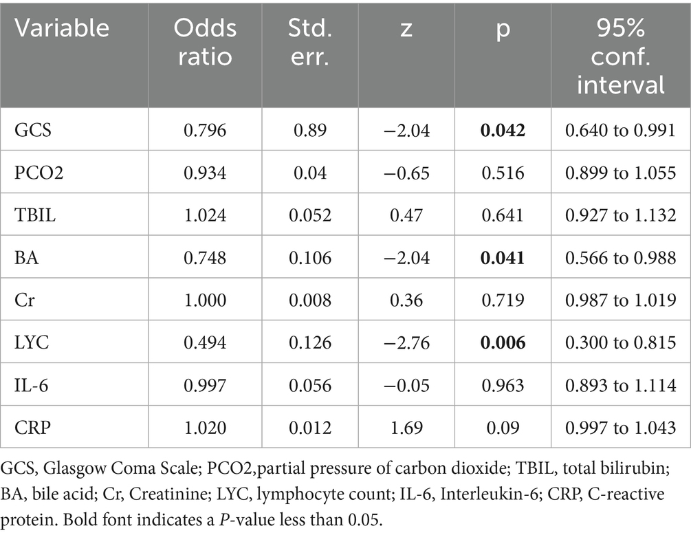 Table 3. Multivariate logistic regression analysis of risk factors for 30-day mortality in TBI patients.