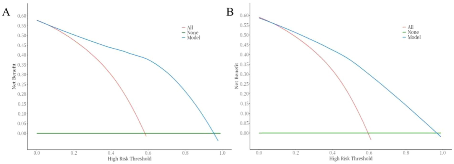 Data analysis was performed using R version 4.1.3. Normally distributed continuous data are presented as mean ± standard deviation (X ± SD), and comparisons between groups were made using the t-test. Non-normally distributed continuous data are presented as median and interquartile range [M (IQR)], and comparisons between groups were made using the Mann–Whitney U test. Categorical data are presented as numbers (%), and comparisons between groups were made using the chi-square (χ2) test. Univariate Logistic regression analysis was used to identify potential risk factors for poor prognosis of ICH in the training cohort. Multivariate Logistic regression analysis was then used to further identify independent risk factors and to establish a nomogram prediction model. The discrimination of the model was evaluated using receiver operating characteristic (ROC) curves. Calibration curves and Hosmer-Lemeshow (H-L) goodness-of-fit tests were used to assess the accuracy of the model, and decision curve analysis (DCA) was used to evaluate its clinical effectiveness. A p < 0.05 was considered to indicate a statistically significant difference.