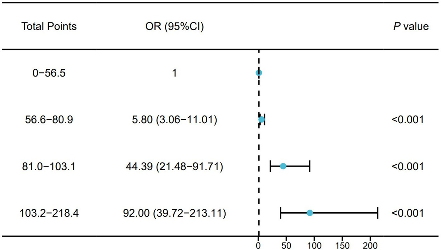 | Bleeding volume | 0.06 | 0.01 | 7.16 | <0.001 | 1.07 (1.05–1.08) |