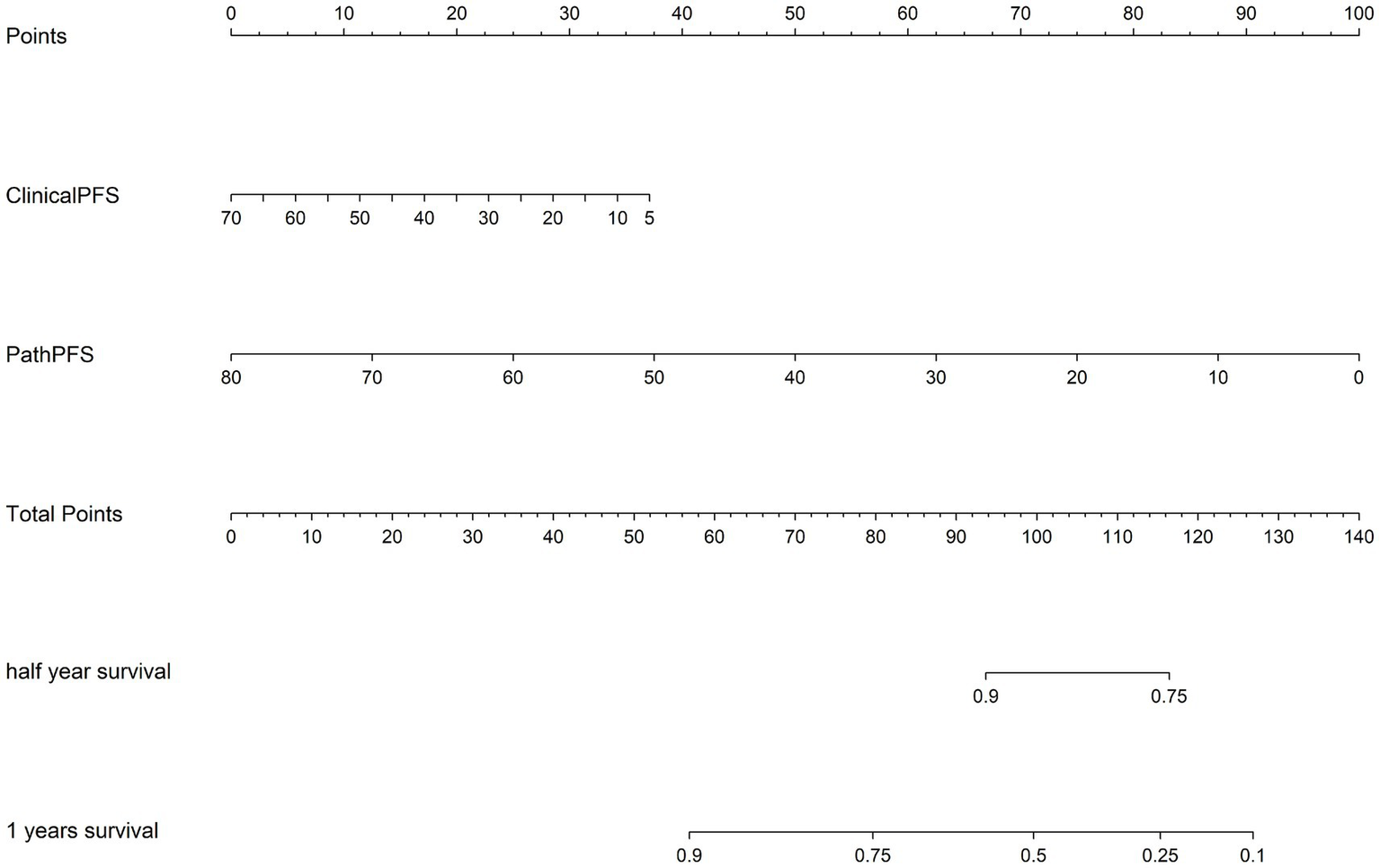 In this study, we developed a pathological signature using a radiomics-like methodology, which combines patch-level predictions, probability histograms, and TF-IDF features. To remove redundant features, we applied Pearson’s correlation analysis (17), selecting those features with a correlation coefficient below 0.9. We further refined feature selection using univariate Cox regression and ranked the features by their p-values. The final feature set was determined through LASSO-Cox regression, where the optimal regularization parameter λ was selected via 10-fold cross-validation. Irrelevant features were then eliminated by setting their coefficients to zero. Additional details are in Supplement A4.