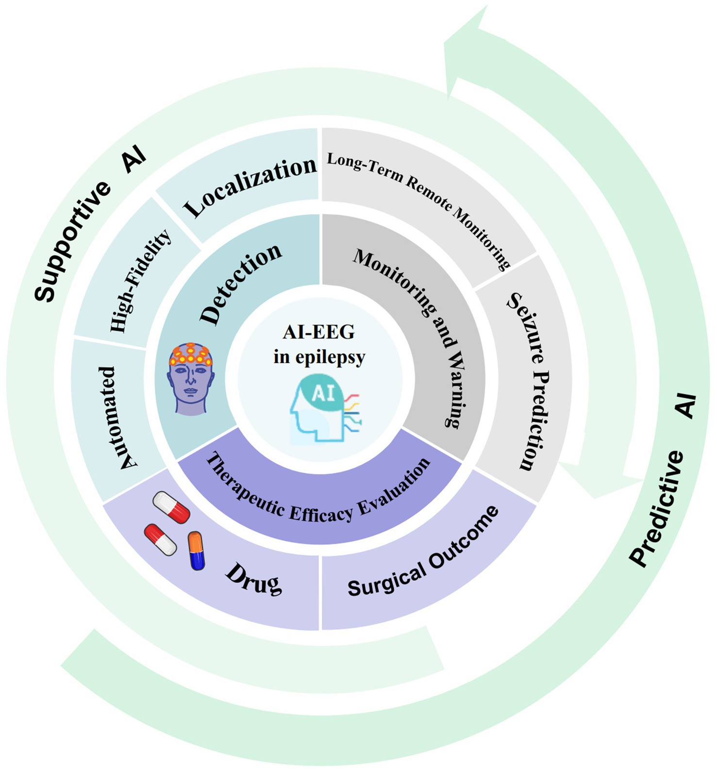 The current research and application of AI-EEG technology in the field of epilepsy detection are primarily focused on the realm of supportive AI. This involves leveraging the robust computational and pattern recognition capabilities of AI to assist clinicians in more efficiently and accurately detecting, identifying, and localizing epileptic seizures, thereby providing a tool to increase diagnostic efficiency and detection standards.