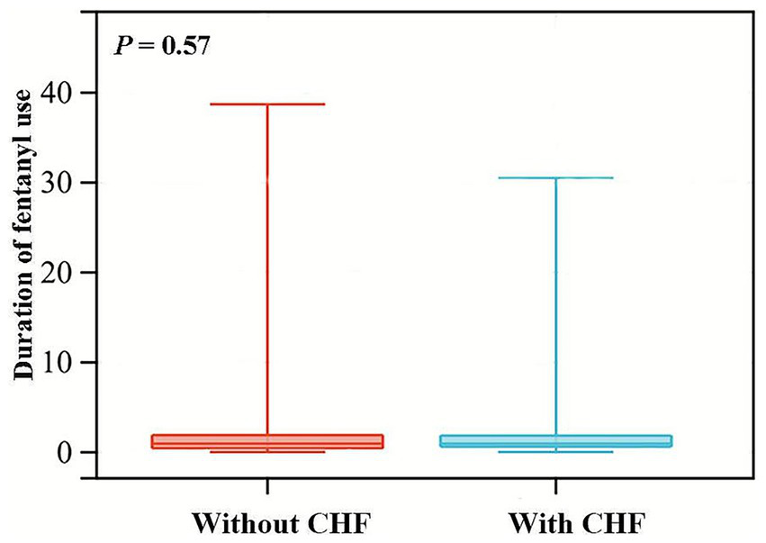 A multicollinearity assessment was performed, and variables with a variance inflation factor (VIF) exceeding 5 were excluded. Logistic regression examines the relationship between one or several independent variables and a binary dependent variable (18). Therefore, three distinct multivariate logistic regression models were established to investigate the association between the key anesthetic and the risk of POP. Model 1 was adjusted for demographic characteristics and comorbidities including age, gender, CHF, and chronic pulmonary disease; Model 2 was adjusted for vital signs, mechanical ventilation, and scoring systems including heart rate, mechanical ventilation, SAPSII, APSIII, and GCS; Model 3 adjusted for laboratory indicators including RDW, hemoglobin, glucose, WBC and SpO2. E-value was proposed to assess potential unmeasured or residual confounding in observational studies and its calculation formula is as follows: OR (odds ratio) = OR + sqrt {OR × (OR − 1)} (19). Hence, we evaluated the robustness by calculating the E-values of the ORs for the association between the key anesthetic and the risk of POP. Subgroup analyses were also conducted for key anesthetic and the risk of POP based on gender (female/male), mechanical ventilation (yes/no), surgical approach (endovascular intervention for aneurysm/others), hyperlipidemia (yes/no), CHF (yes/no), CVD (yes/no), chronic pulmonary disease (yes/no), and renal disease (yes/no). The false discovery rate (FDR) correction for multiple comparison was performed. The interactions between key anesthetic and variables used for stratification were tested using a Z-test (20). To clarify the differences in the efficacy of key anesthetic and commonly used clinical disease severity scoring systems in predicting POP, we compared the predictive performance of key anesthetic with that of GCS, SAPSII, and APSIII. The integrated discrimination improvement (IDI) is a statistic proposed as a measure of the incremental prognostic impact that a new biomarker will have when added to an existing prediction model for a binary outcome. Therefore, on the basis of the traditional scoring system, the key anesthetic was incorporated to build a new model, and the efficacy changes were evaluated by calculating the IDI index. All statistical analyses were performed using SPSS version 26.0 and R version 4.2.1. ROC, DCA, and IDI analyses were performed using the R packages “pROC,” “rmda,” and “PredictABEL,” respectively. Results with two-sided p values less than 0.05 were considered statistically significant.