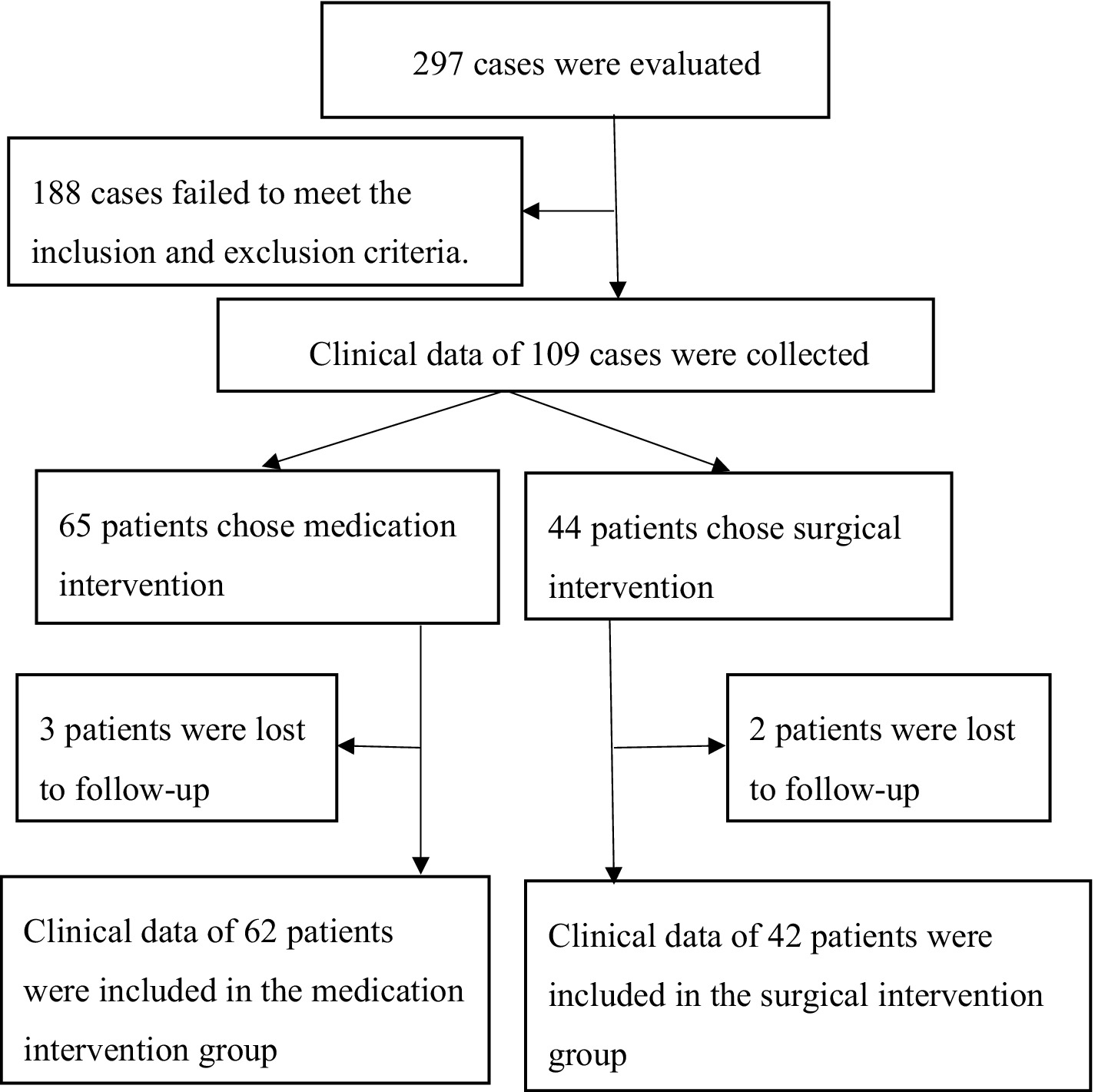 4. The clinical efficacy after 30 days and 3 months demonstrated a significant difference between the two groups (p < 0.05), with the surgical intervention group showing superior efficacy compared to the medication intervention group (Table 4).