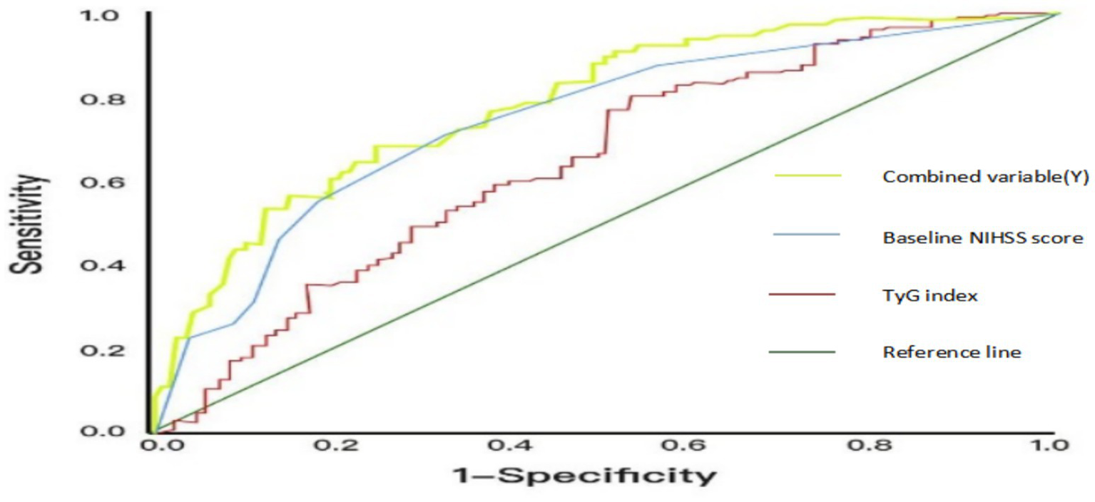 The TyG index, baseline NIHSS score, and the combined variable (Y) are predictors of early neurological improvement, with the combined variable (Y) exhibiting a higher predictive efficiency.