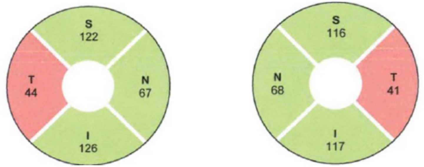 Retinal nerve fiber layer analysis showing bilateral temporal retinal nerve fiber layer thinning in a patient with ethambutol optic neuropathy. Courtesy: Bouffard et al. (45).