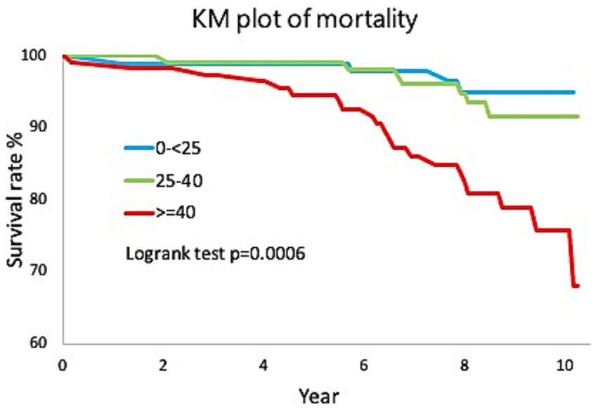 Categorical and continuous variables were compared by Pearson’s chi-squared test and one-way ANOVA test, respectively. The incidence rates (per 102 person-years) with 95% confidence intervals (CIs) of all-cause mortality were calculated by Kaplan–Meier method and the log-rank test.