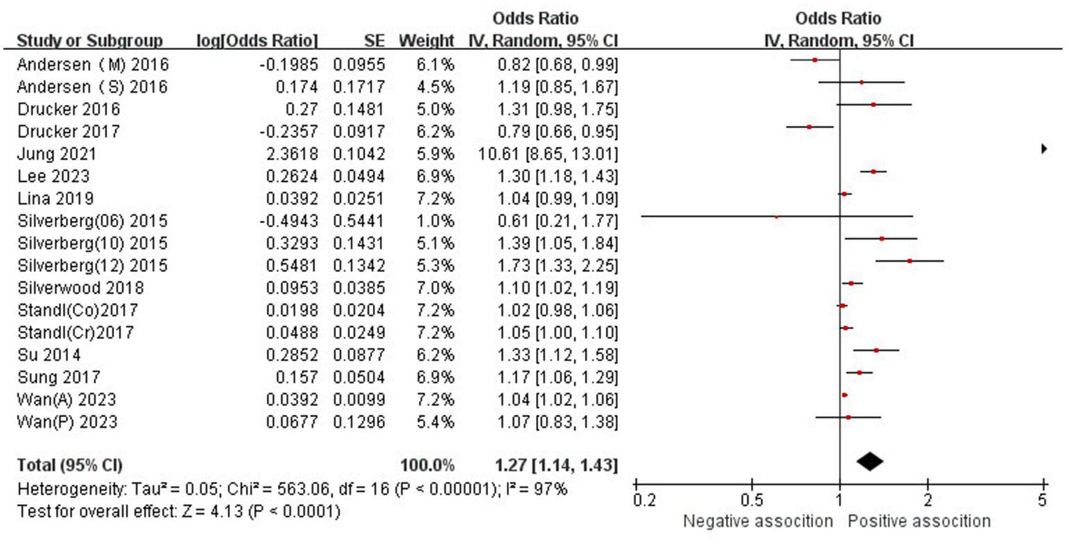 | Overall studies | 17 | 1.27 (1.14–1.43) | P<0.0001 | 97% | P < 0.00001 |