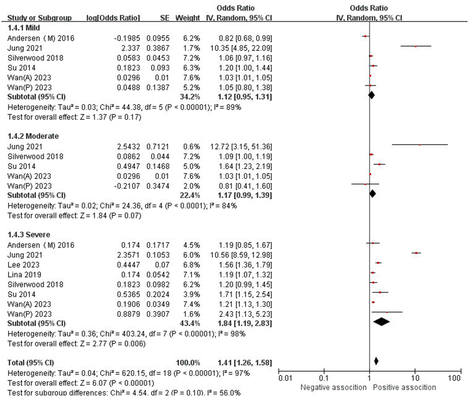 | Mild | 5 | 1.12 (0.95–1.31) | p = 0.17 | 89% | P < 0.00001 |