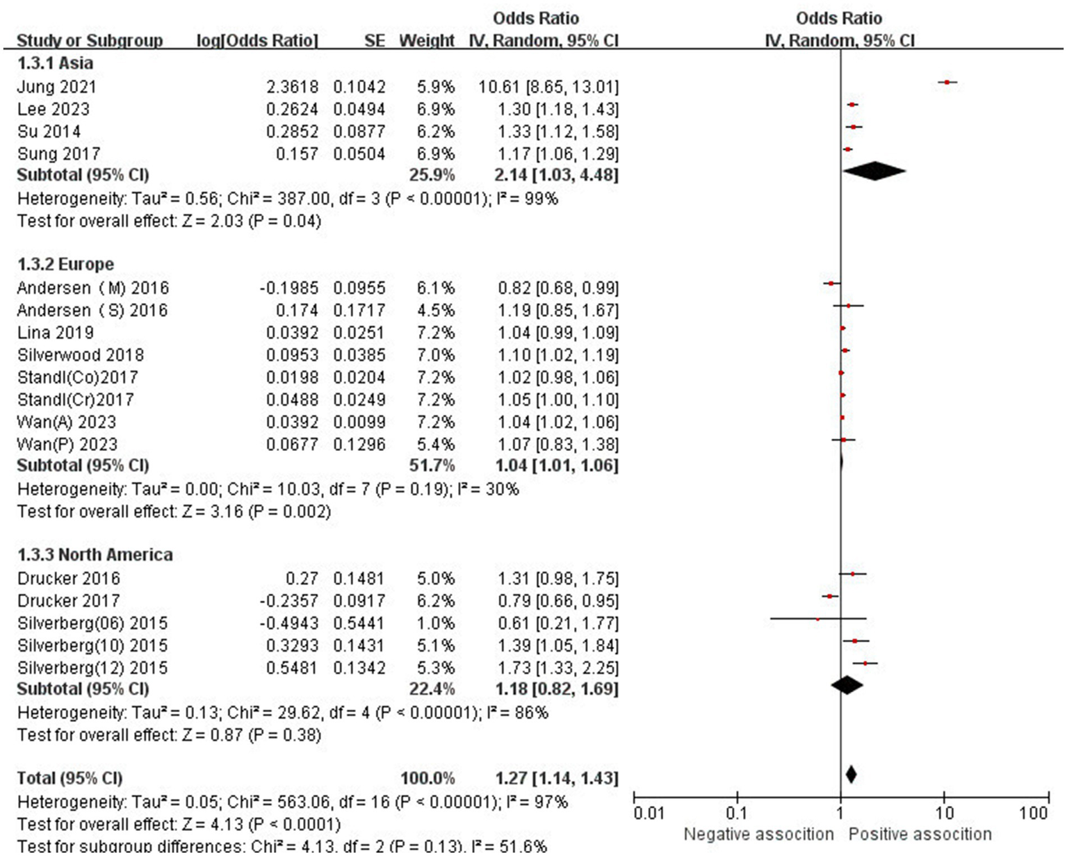 | Asia | 4 | 2.14 (1.03–4.48) | p = 0.04 | 99% | P < 0.00001 |