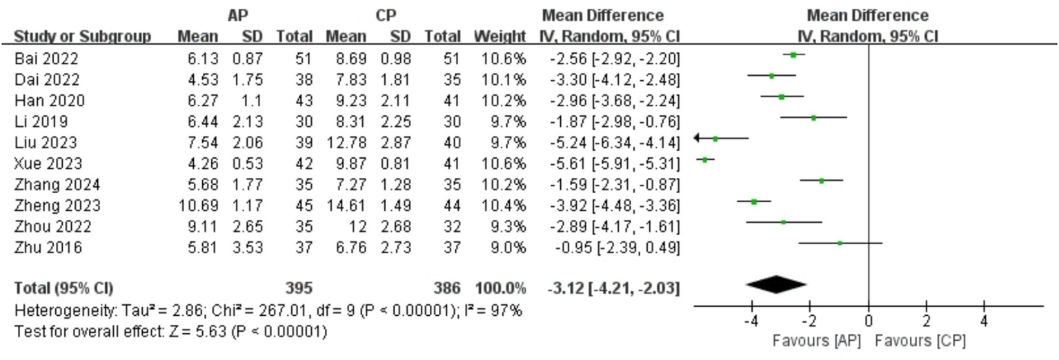 Conclusion: AP demonstrates significant efficacy in treating PMI patients, offering an innovative integrative therapy with substantial clinical value. Future studies should involve more large-scale, multicenter RCTs with long-term follow-up.