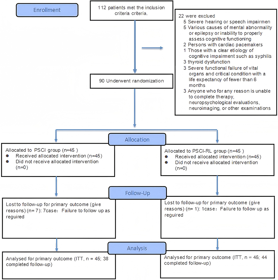 This study was conducted in the Third Hospital of Wenzhou Medical University. A total of 90 patients with PSCI were recruited in this study between September 2022 and June 2024. The study procedures and protocols were approved by the Ethics Committee of the Third Affiliated Hospital of Wenzhou Medical University (Approval No. YJ2022008), and all participants or their guardians signed a written informed consent form. The study was registered on Chictr.org (China Clinical Trial Registry Unique Identifier, registration number: ChiCTR2200058991), date of registration: April 22, 2022.