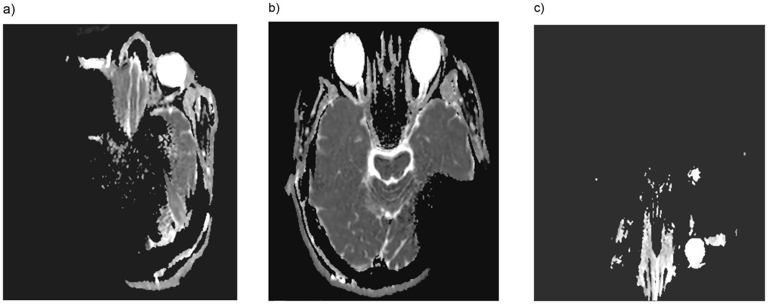 In contrast to Arnold et al. (3), this study focused on visualizing the orbit, paranasal sinuses, and nasopharynx as extracranial anatomical structures, using a categorical visibility scale dividing into four categories (0–25%, 25–50%, 50–75%, and 75–100%) as established in the previous study.