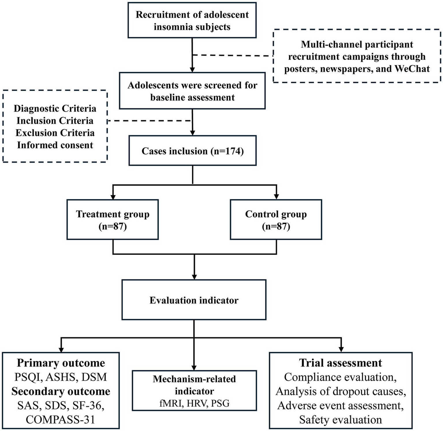 The study prevents a novel approach to addressing teenage insomnia by integrating modern neurophysiological strategies with traditional acupuncture. Utilizing a Randomized Controlled Trial design enhances the reliability of the results and minimizes bias. Objective measures, including polysomnography (PSG), HRV, and fMRI, are employed to comprehensively evaluate the treatment effects. By exploring the neural mechanisms underlying the treatment outcomes, the study aims to advance understanding of insomnia and its management. With a focus on non-pharmacological interventions due to concerns regarding medication side effects in adolescents, the generalizability of the findings may be limited to the teenage population. Conducted in a specific cultural context, the study’s findings may have restricted applicability beyond this setting. Despite efforts to recruit an adequate number of participants, the sample size limitations could affect the study’s ability to detect smaller effects. While the treatment and follow-up durations are clearly defined, the sustainability and long-term benefits of the intervention remain uncertain. Various factors contributing to insomnia may not have been fully considered in this study.